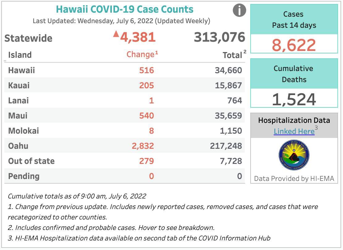 Hawaii Reports 4 381 New Covid 19 Cases Statewide
